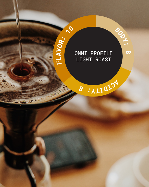 We roast this coffee light with a slightly extended development time - this allows the coffee to develop an additional layer of complexity. It will work great as filter or even espresso. And it truly shines when prepared as cold drip!