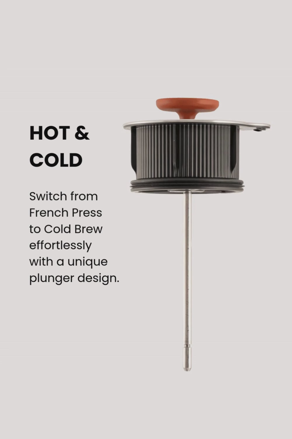 Innovation: Retractable "Cold Brew Mode" mesh plunger.