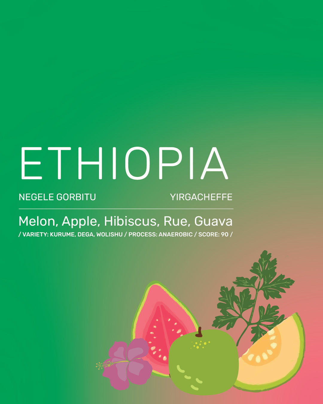 Negele Gorbitu: anaerobic fermentation from Yirgacheffe - full, rich, juicy, but still a true Ethiopian (not destroyed by additional processing).