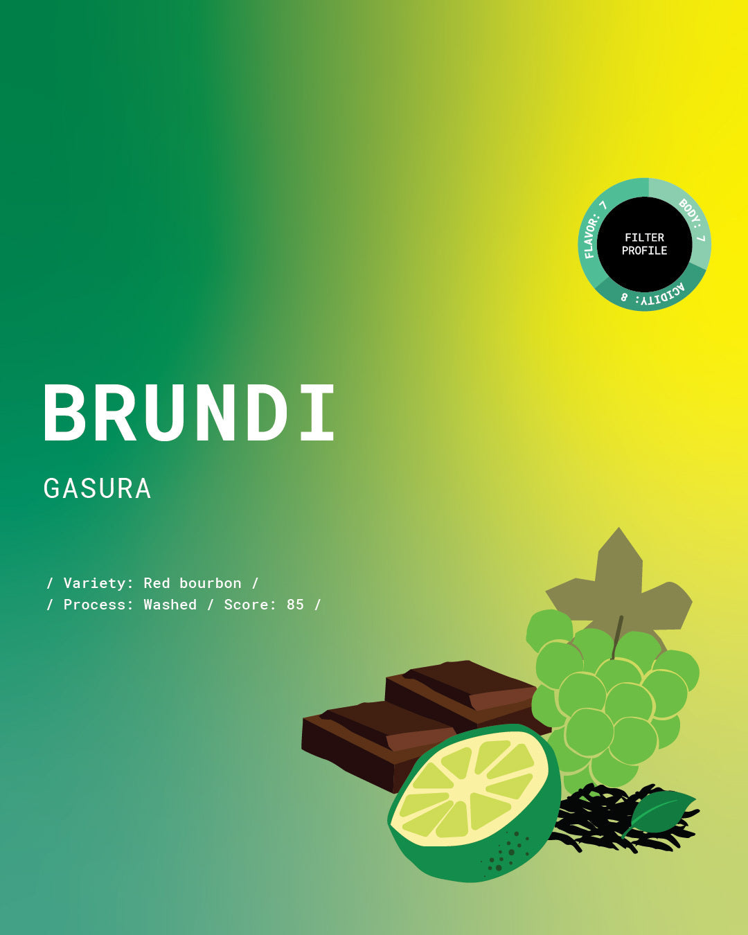 The Gasura Washing Station in Burundi, located in the northern area of Kirundo province, produces fully washed coffee. The region, known for growing Arabica coffee red bourbon variety, receives cherries from 400 coffee growers belonging to the cooperative named "Terimbere" (Let's Move Forward) in Kirundi. Women empowerment is emphasized, encouraging their involvement in coffee production from seed to harvest. Cherries are carefully selected and delivered the same day to the wet mill for fermentation and washing. Gasura stands out as one of the seven wet mills operating in the Northern East region.