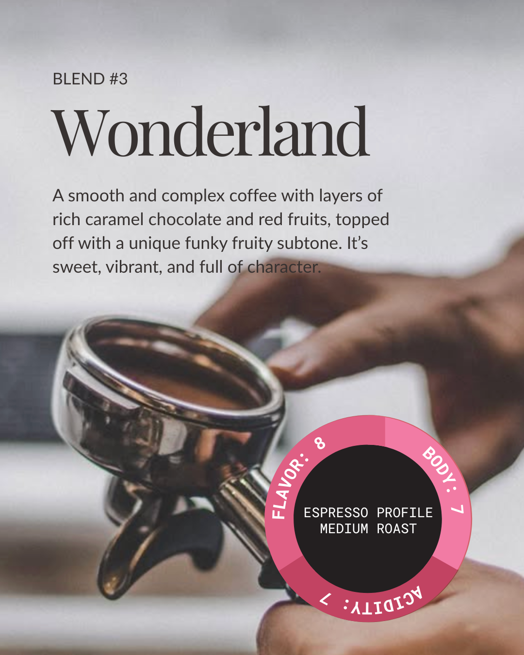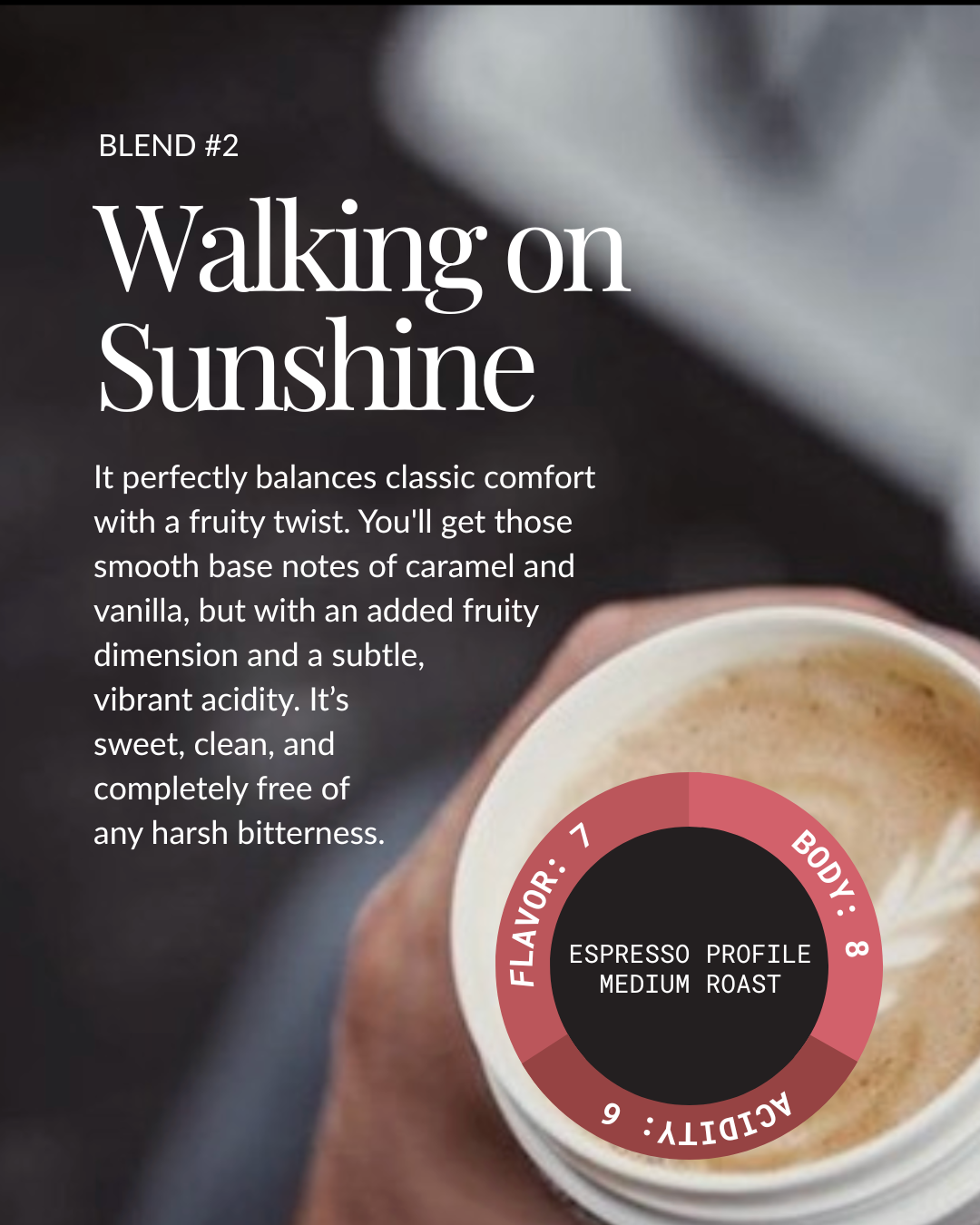Fruit-forward seasonal blend, works perfect as espresso, but blend well with milk to create a candy-like flavor sensation.