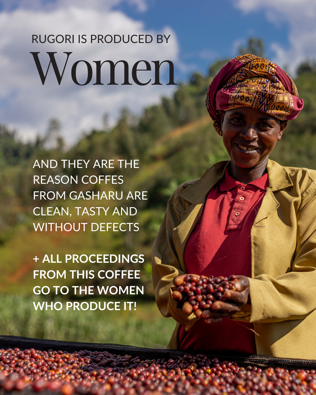 If you appreciate a coffee that tells a powerful story through a perfectly balanced profile, Rugori is for you. Named after the traditional Rwandan crown given to mothers as a symbol of respect, this lot is solely produced and processed by women at Gasharu Coffee to honor their vital role in the coffee community.