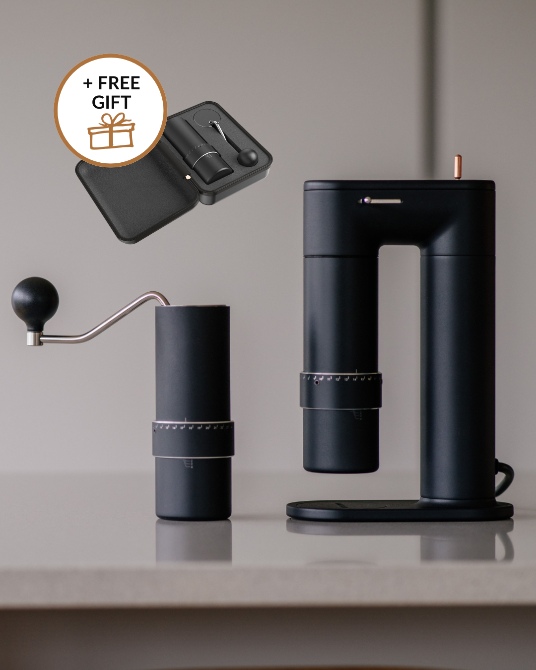 A hand grinder. An electric grinder. United in a seamless grind experience. Crank it up with your hands. Or connect it to its power dock. A touch of genius!