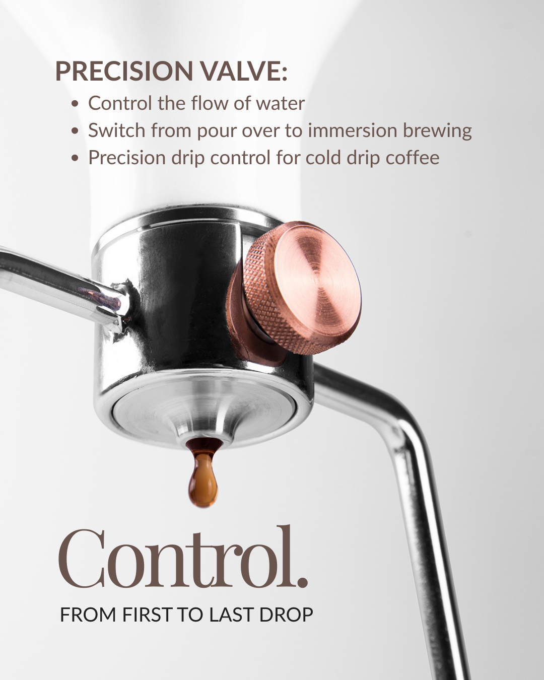 An engineering gem that many have tried to copy without success. Premium stainless steel, smooth control and 100% precision control over every drop of your next cup.