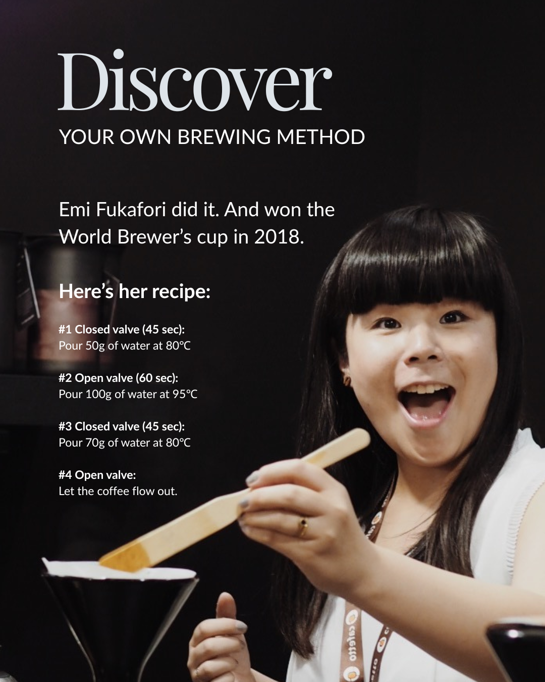 Here is what Emi Fukahori did to win the World Brewers Cup with GINA. This is her winning recipe: